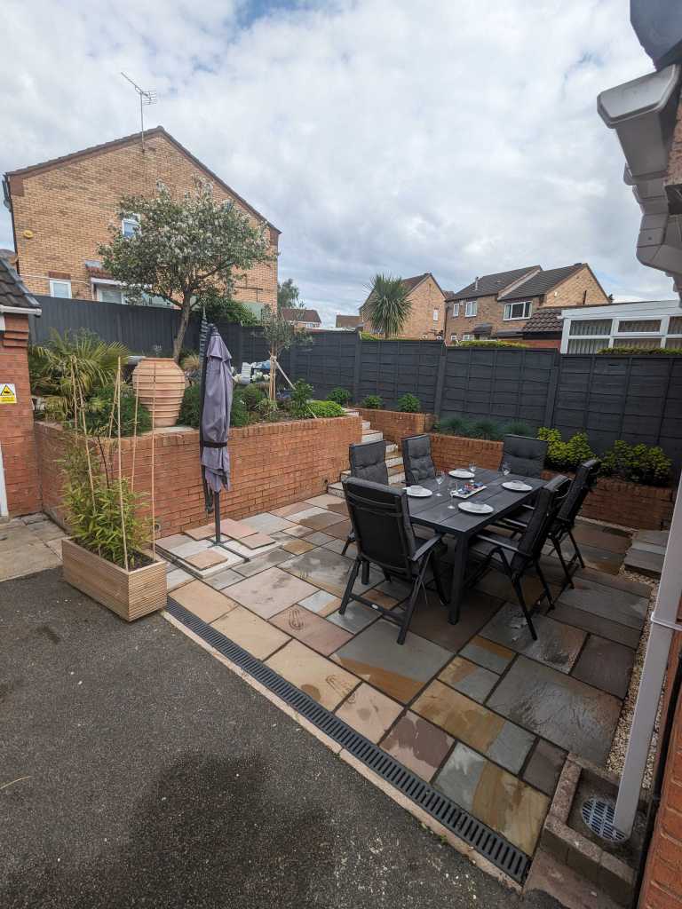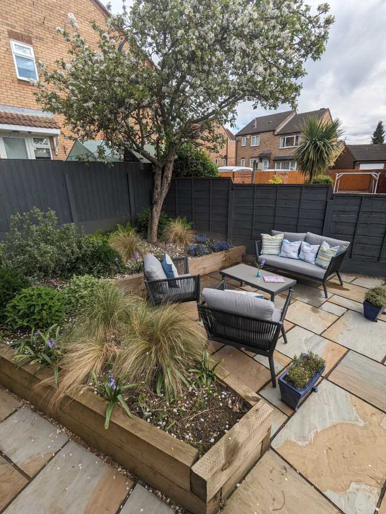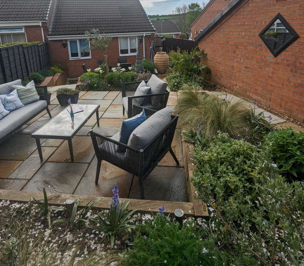A garden of only 32sqm, this design had to give the clients a lot in a small space. The brief here was to create a cosy space for relaxing and entertaining, that created the feeling of being abroad. The warm tones in the brick and pavers along side the natural wood sleepers help to bring warmth to the garden even in classic British Summer rainy days.